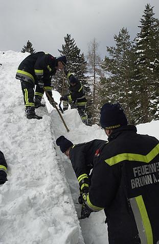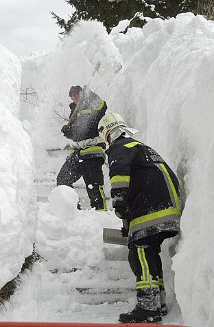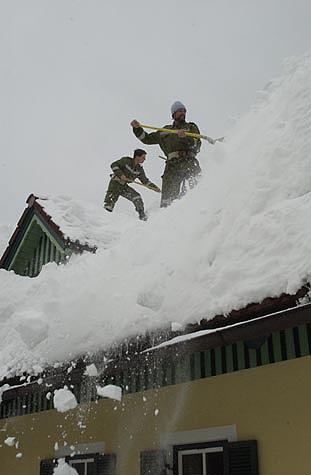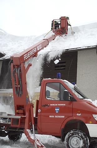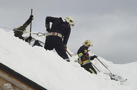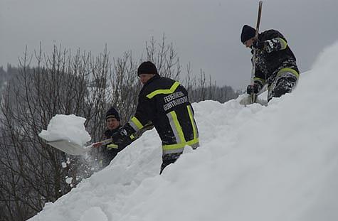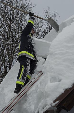 In dieser Gemeinde sind am heutigen Tag rund zwei Dutzend Dächer von Schneemassen zu befreien.