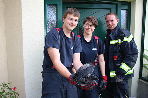 Vor Ort konnte ein verängstigter Rabe in einem Kaminschacht vorgefunden werden. Behutsam wurde dieser aus seiner misslichen Lage gerettet und ins Freie gebracht. Mit einem saften Wasserstrahl wurde der Vogel vom Dreck und Ruß befreit und schon wenige Augenblicke später konnte der Rabe seine Reise fortsetzen.