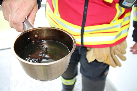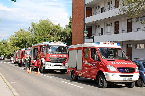Dieser Vorteil ergab, dass das Vorausfahrzeug binnen weniger Augenblicke ausrücken konnte. An der Einsatzstelle wurde die Besatzung rasch über ein milderes Lagebild informiert und der Einsatzleiter, BI Martin Gall, konnte zwei überkochende Töpfe in der Küche erkunden. Zwischenzeitlich trafen fünf weitere Einsatzfahrzeuge an der Einsatzadresse ein. Das Hubrettungsfahrzeug wurde hofseitig positioniert. Die Bewohnerin konnte die stark verrauchte Wohnung rechtzeitig verlassen.