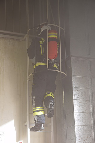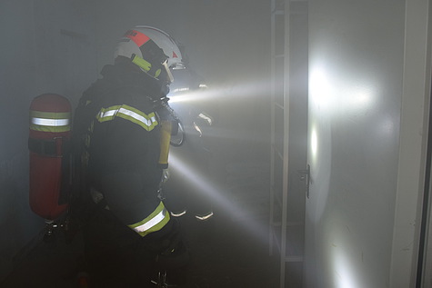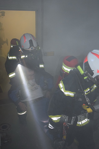 In zwei Durchgängen konnten sechs Atemschutzgerätträger das richtige Verhalten im Innenangriff, inklusive dem Umgang mit dem Hohlstrahlrohr sowie der Menschenrettung mit Hilfe von künstlich erzeugtem Rauch näher gebracht werden.