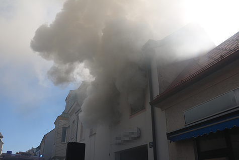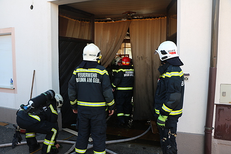 Bereits auf der Anfahrt zum Einsatzort konnte durch die Feuerwehr Brunn eine massive Rauchsäule wahrgenommen werden. Noch auf der kurzen Anfahrt rüstete sich ein Atemschutztrupp aus und bereitete sich auf einen Innenangriff vor.