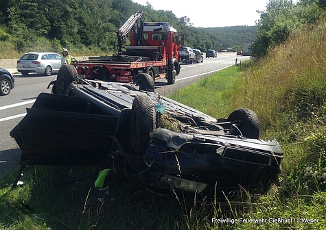 Zu einem PKW-Überschlag kam es am Mittwoch, den 2016-07-06 auf der A21 in Fahrtrichtung Steinhäusl, zu dem die Freiwillige Feuerwehr Gießhübl zur Bergung des Fahrzeuges alarmiert wurde.