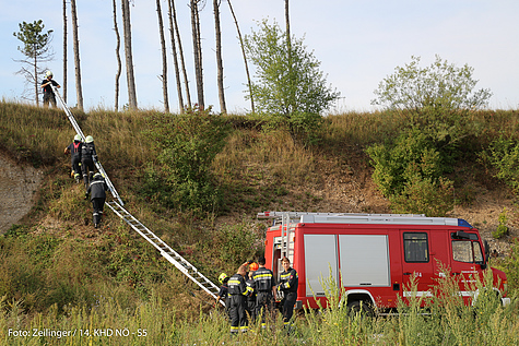 1. und 2. KHD-Zug:Um den Waldbrand effizient bekämpfen zu können, wurde die Mannschaft in der sogenannten Riegelstellung positioniert.