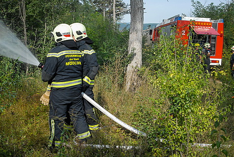 Die örtliche Feuerwehr Weikersdorf am Steinfelde steht seit mehreren Tagen bei einem Waldbrand im Einsatz.