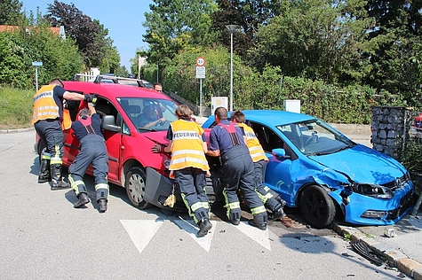 Die jeweiligen Lenker blieben zum Glück unverletzt. Nach einer kurzen Erkundung des Einsatzleiters, BI Martin Gall, sowie Abklärung mit den Polizeibeamten erfolgte das Freimachen der Verkehrsfläche. Beide Unfallfahrzeuge konnten per Hand, mit vereinten Kräften der Einsatzmannschaft, von der Kreuzung entfernt und auf einer Parkfläche abgestellt werden. Anschließend wurden die Fahrzeugbatterien abgeklemmt und die Fahrbahn gereinigt.