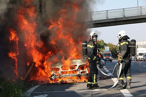 Um 15:56 Uhr wurde die Freiwillige Feuerwehr Brunn am Gebirge mittels Sirene und Personenrufempfänger zum Fahrzeugbrand auf die Autobahn alarmiert.