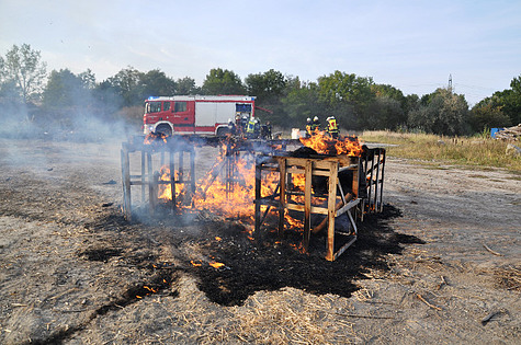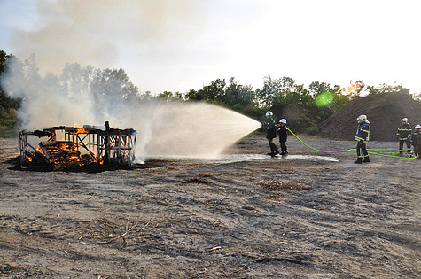 Wiederum wurde die Schulung durch einen gestellten Einsatz, diesmal ein Brandeinsatz, unterbrochen. Sogleich wurde die Einsatzörtlichkeit angefahren und die FJ-Mitglieder konnten den Brand unmittelbar danach mit einen C-Rohr löschen.