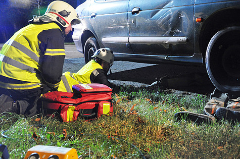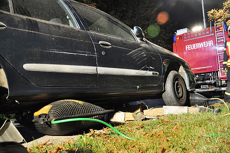 Unmittelbar nach dem Abendessen schrillten erneut die Pager und der Hausalarm. Das Alarmstichwort hieß, „Technischer Einsatz – Person in Notlage, Person unter PKW eingeklemmt“.