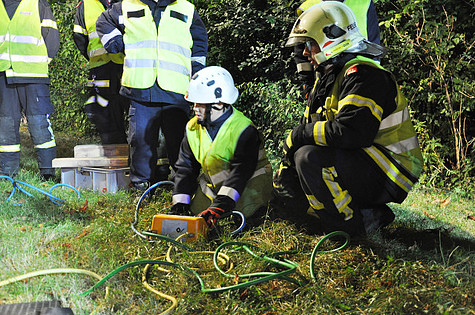 Die FJ-Mitglieder eilten erneut gemäß Ausrückeordnung zum Einsatzgeschehen. Nach Ausleuchtung der Einsatzstelle, konnte die Person durch die FJ-Mitglieder rasch mittels Hebekissen unter dem PKW hervor geholt und dem fiktiv anwesenden Rettungsdienst übergeben werden.