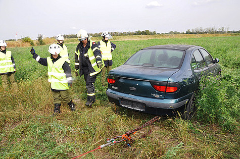 Bei dem ersten gestellten Einsatz handelte es sich um eine PKW-Bergung, bei dem die FJ-Mitglieder ihr bereits im Vorfeld bei den Jugendstunden (immer Montags 18-20 Uhr) erlerntes Wissen praktisch umsetzen mussten, und so den PKW mit den ihnen zur Verfügung stehenden technischen Mittel bargen.