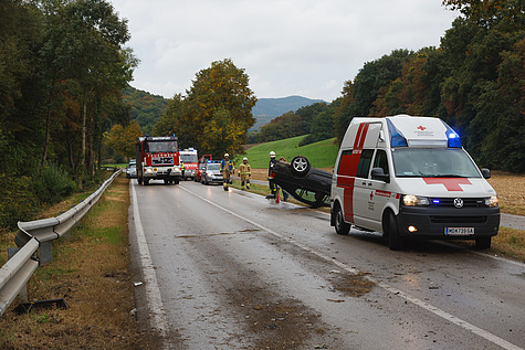 Aus unbekannter Ursache ist heute ein PKW auf der Laaberstrasse nach einem Verkehrsunfall auf dem Dach zum liegen gekommen.