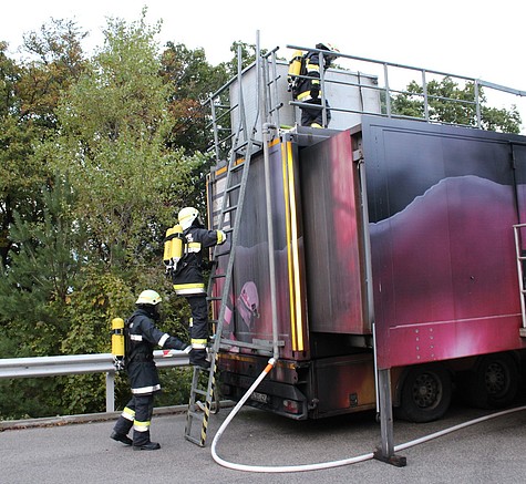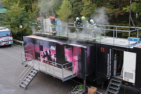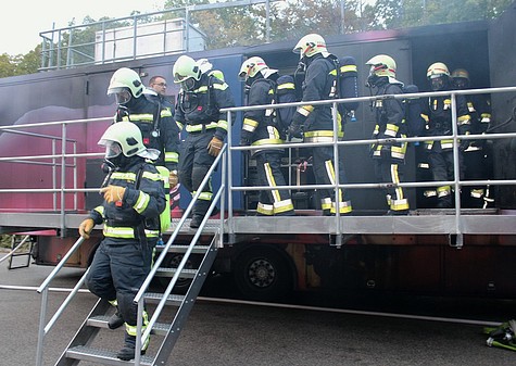 Am Areal der Freiwilligen Feuerwehr Gießhübl konnten 34 Atemschutztrupps aus dem Bezirk Mödling an verschiedenen Brandstellen mit Temperaturen bis zu 400 °C die Löschtechnik im Atemschutzeinsatz perfektionieren.