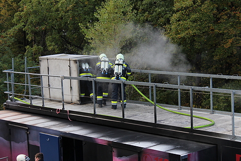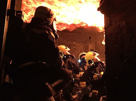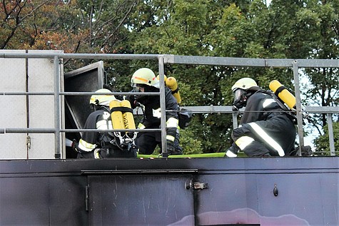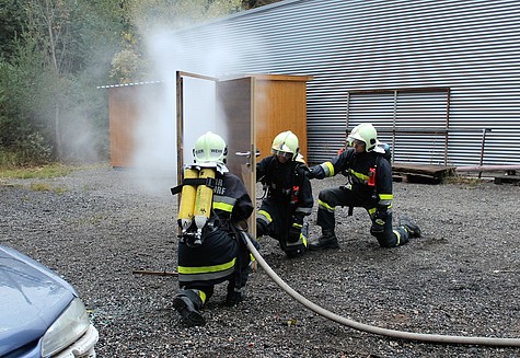 Ein Highlight bei dieser Ausbildung ist der sogenannten „Flash Over“ oder auch Rauchdurchzündung genannt, welche hier ebenfalls simuliert werden konnte und die Atemschutzträger zusätzlich zum Schwitzen brachte.