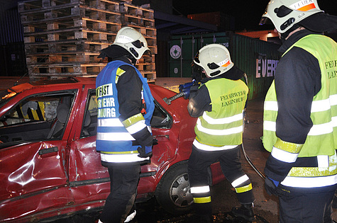 Nach getaner Planung begann am Dienstag im Laufe des Tages, in Zusammenarbeit mit mehreren Mitarbeitern der Firma LKW-Walter, die Vorbereitungen. Die Übungsannahme war ein schwerer Verkehrsunfall mit drei beteiligten Fahrzeugen mit jeweils zwei eingeklemmten Personen.