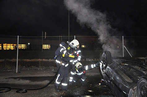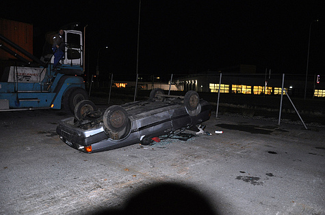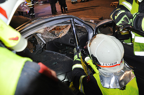 Ein PKW überschlug sich mehrmals und kam auf dem Dach zum Stillstand. Auf Grund dessen war dieser ebenfalls massiv deformiert, was wiederum den Zugang zu den Personen ebenfalls sehr erschwerte. Zu alle dem brannte der PKW beim Eintreffen der ersten Einsatzkräfte, was ein schnelles Handeln unbedingt erforderte.