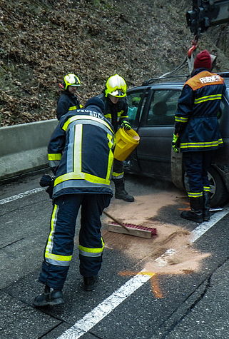 Der zweite PKW wurde ebenfalls durch das SRF Sittendorf angehoben und auf der Abschleppachse der Feuerwehr Sulz wieder abgestellt und für den Abtransport vorbereitet. Beide PKWs wurden auf einem gesicherten Abstellplatz abgestellt. Zeitgleich wurde die Fahrbahn gereinigt und die ausgetretenen Flüssigkeiten mit Bindemittel gebunden.