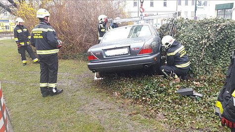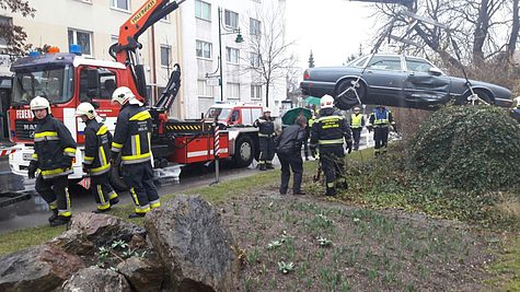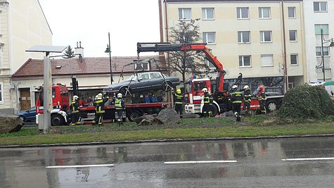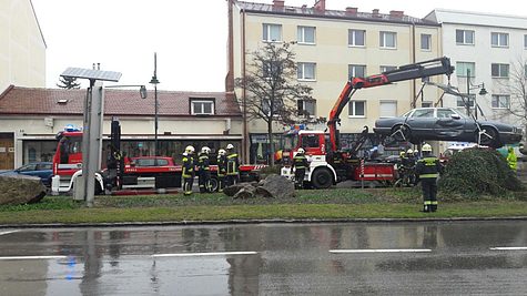 Ein PKW musste aus dem Grünstreifen mittels Kran geborgen werden.
