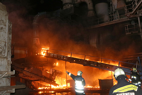 Eine Förderanlage für Schreddermaterial war in Brand geraten. Von Tank 1 wurden zwei Löschleitungen unter Atemschutz vorgenommen und eine Vollalarmierung der Feuerwehr Laxenburg veranlasst. Um 23:25 Uhr alarmierte die Bezirksalarmzentrale zum Industriebrand B3.