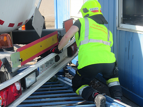Gleichzeitig wurde der notwendige Brandschutz aufgebaut, da noch nicht sichergestellt werden konnte, dass der Tank bei dem Aufprall kein Leck bekommen hatte.