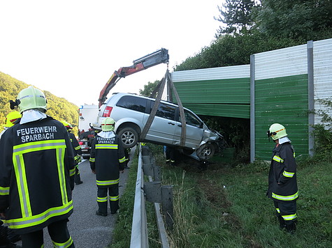 Um 06:28 wurde die Freiwillige Feuerwehr Sparbach zur Fahrzeugbergung alarmiert. Der Lenker konnte sich noch selbst aus dem Fahrzeug befreien. Er wurde bei Eintreffen der Freiwilligen Feuerwehr Sparbach bereits durch den Rettungsdienst versorgt und anschließend ins Krankenhaus transportiert. Für die Bergung musste ein Fahrstreifen durch die ASFINAG gesperrt werden.