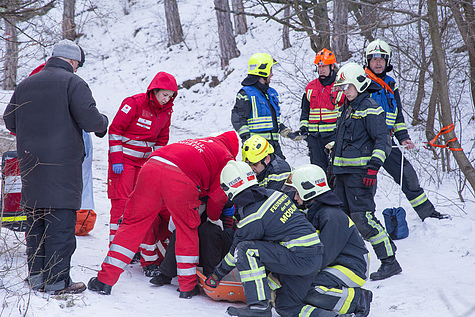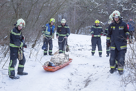 Um ca. 15:30 Uhr wurde die Feuerwehr Mödling zur Unterstützung des Roten Kreuzes bei der Rettung einer verletzen Patientin im Mödlinger Wald alarmiert. Eine an der Schulter bzw. am Arm verletzte Frau konnte bei dem extrem eisigen Waldweg an der Goldenen Stiege nach dem Sturz den Rückweg nicht alleine fortsetzen.