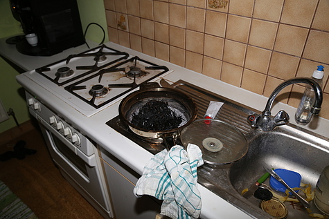 Innerhalb weniger Minuten rückten zwei Tanklöschfahrzeuge und ein Hubrettungsgerät zum Einsatz aus. Bereits auf der Anfahrt legten zwei Atemschutztrupps Atemschutz an. Die bereits vor der Feuerwehr eingetroffene Polizei konnte durch intensives Klopfen an der Türe den Bewohner bewegen, die Türe zu öffnen. Dieser wurde sogleich dem ebenfalls mit mehreren Fahrzeugen anwesenden Roten Kreuz übergeben. Das auf dem Herd befindliche Kochgut konnte rasch entfernt und vollständig abgelöscht werden. Seitens der Feuerwehr wurde anschließend eine Überdruckbelüftung des Stiegenhauses gestartet, um das Objekt vollständig rauchfrei zu machen.