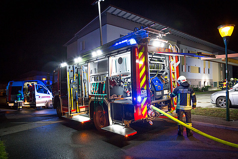 Die FF Gumpoldskirchen wurde gegen 22:40 Uhr alarmiert und rückte mit vier Fahrzeugen und 20 Feuerwehrmitgliedern zum Brandeinsatz aus. Zwei Atemschutztrupps konnten den Brand in der ebenerdig gelegenen Wohnung mit einer C-Löschleitung rasch unter Kontrolle bringen. Mehrere Bewohner mussten das Haus aufgrund der starken Rauchentwicklung verlassen, zumindest zwei Personen wurden vom Roten Kreuz versorgt.