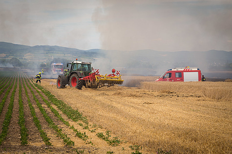 Maßgeblich zum Einsatzerfolg trugen auch mehrere Bauern bei, die mit verschiedenen landwirtschaftlichen Geräten Schneisen in die Felder zogen, um die Ausbreitung des Feuers einzudämmen.