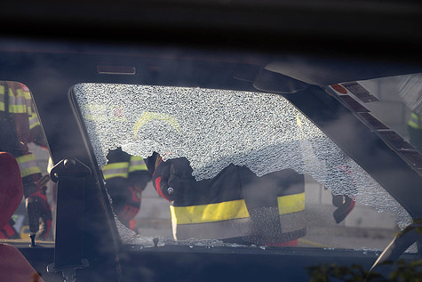 Um den PKW wieder fahrbereit zu machen, wurde die Scheibe mittels einer dünnen Holzplatte verklebt.