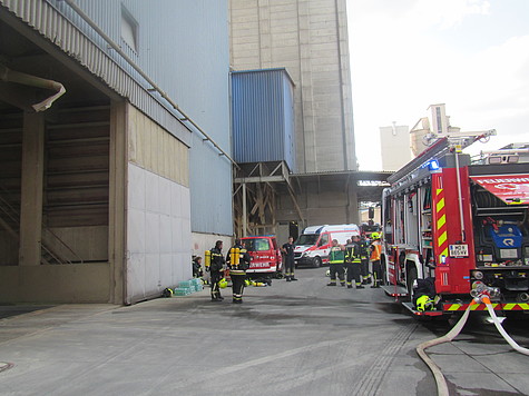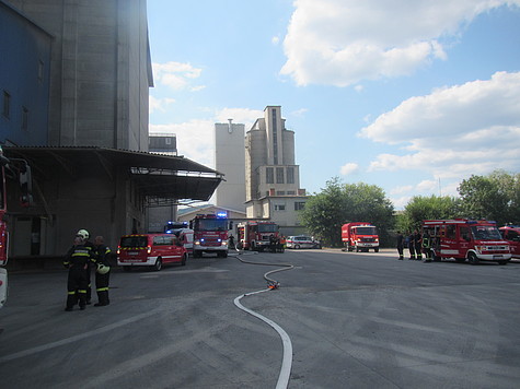 Der Einsatzleiter stellte bei der Erkundung fest, dass es im Bereich der Brot-Recycling Anlage nach einer Staubexplosion zu einem ausgedehnten Brand im kompletten Abfördersystem gekommen war.