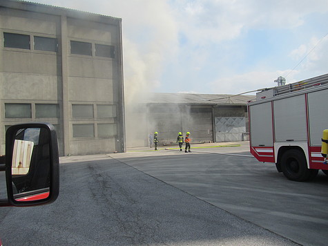 Während der Löscharbeiten wurde die Halle der Brot-Recycling Anlage mit drei Hochleistungslüftern belüftet.