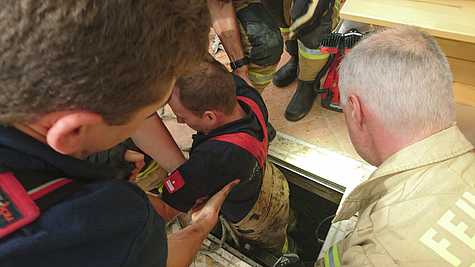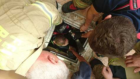 Sofort wurde eine Steckleiter in den Schacht gelassen und gleichzeitig der Schacht mittels Elektrolüfter belüftet. Ein in den Schacht abgestiegener Feuerwehrmann, welcher den Hund kannte, legte diesem ein Rettungsdreieckstuch an und befestigte daran eine Leine. Damit konnte der Hund konnte rasch händisch an die Oberfläche gezogen werden. Sogleich wurde der Hund über eine spezielle Tierbeatmungsmaske mit Sauerstoff versorgt und fand so rasch wieder zu Kräften.