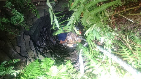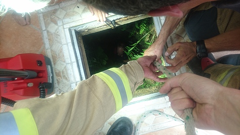 Aus unbekannter Ursache war ein Hund in einen, in einem Haus befindlichen, ca. 4 m tiefen Brunnenschacht gestürzt.