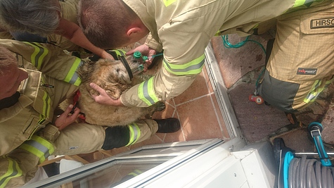 Bei Ankunft der Feuerwehr Breitenfurt war der Hund bei Bewusstsein, allerdings leicht lethargisch.
