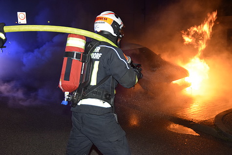 Um die Flammen zu bekämpfen wurde unter Atemschutz eine C- Löschleitung vorgenommen. Durch das rasche Eingreifen der Freiwilligen Feuerwehr Wiener Neudorf konnte ein Übergreifen des Feuers auf weitere geparkte Fahrzeuge verhindert werden.
