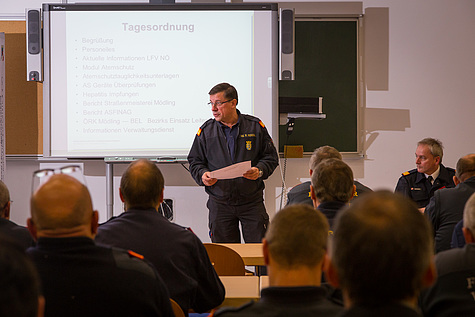 Beim Hauptteil des Meetings ging es danach um feuerwehrfachliche Themen: Bezirksfeuerwehrkommandant Richard Feischl und sein Stellvertreter Christian Giwiser informierten die Anwesenden über Aktuelles aus dem NÖ Landesfeuerwehrverband. Dabei ging es unter anderem um Ausbildung, die Stationierung von Fahrzeugen, Hepatitis-Schutzimpfungen und die Zusammenarbeit mit Partnerorganisationen wie der ASFINAG und dem Rotem Kreuz.
