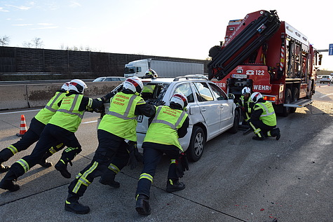 Der zweite Lkw konnte von der Feuerwehr so weit fahrbereit gemacht werden, dass er die Autobahn selbständig verlassen konnte. Zu diesem Zweck mussten verformte Chassis-Teile von der Feuerwehr weggeschnitten werden.