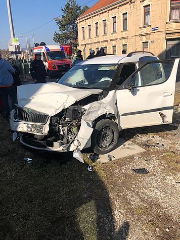 Bei der Kreuzung Ketzergasse /Popovicgasse kollidierten am Vormittag des 17. Februar 2019 zwei Fahrzeuge und blieben schwer beschädigt auf der Fahrbahn stehen.