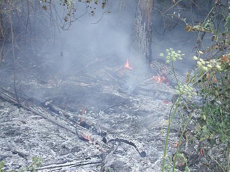 Abschließend wurde der vom Brand betroffene Waldbereich und die unmittelbare Umgebung noch kräftig mit Wasser benetzt, um ein neuerliches Entzünden zu verhindern.
