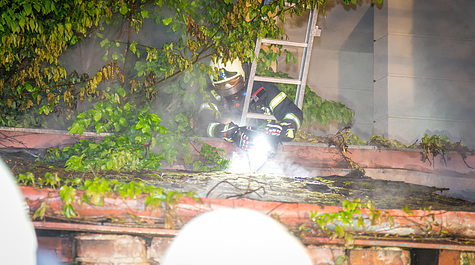 Für die Nachlöscharbeiten musste jedoch der teilweise eingestürzte Dachstuhl abgetragen und ausgeräumt werden. Zu der darüber befindlichen Wohnung wurde sich Zutritt verschafft und ebenfalls von der Feuerwehr kontrolliert.