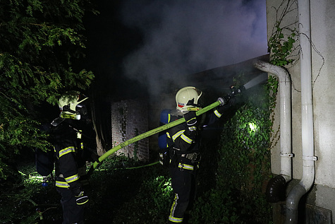 Die Freiwillige Feuerwehr Biedermannsdorf verschaffte sich Zutritt zu dem leer stehenden Nachbarhaus und begann in weiterer Folge über den Garten mit den Löscharbeiten.