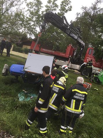 Zu einer Traktorbergung wurde die Feuerwehr Perchtoldsdorf Vormittag des 16.05.2019 gerufen. Ein Rasenmähertraktor war über eine Böschung gekippt und seitlich liegen geblieben. Der leicht verletzte Fahrer konnte sich selbständig befreien und wurde vom Roten Kreuz betreut.