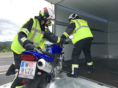 Die Freiwillige Feuerwehr Wiener Neudorf barg das Motorrad mit dem Versorgungsfahrzeug und reinigte die Unfallstelle von Fahrzeugteilen und ausgeflossenen Betriebsmittel.