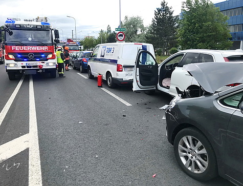 Laut Alarmierung der Bezirksalarmzentrale um 14:29 Uhr, begann eine PKW nach einem Verkehrsunfall zu brennen. Insgesamt wurden fünf PKW und ein LKW in den Unfall verwickelt. Nach der Ankunft der Einsatzkräfte am Unfallort, konnte kein Brand eines der am Unfall beteiligten Fahrzeuge erkundet werden.