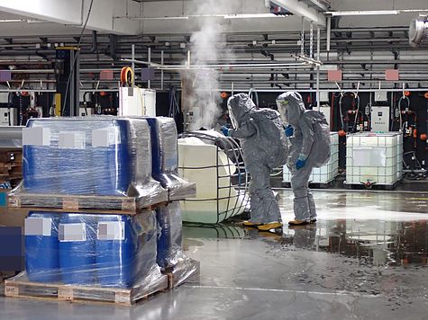 Da die Abwässer des ganzen Firmengeländes über eine Neutralisationsanlage führen und keine kontaminierten Abwässer das Betriebsgelände verlassen können, wurde in Absprache mit Chemikern des Betriebes entschieden, den Schadstoff mit viel Wasser zu verdünnen.