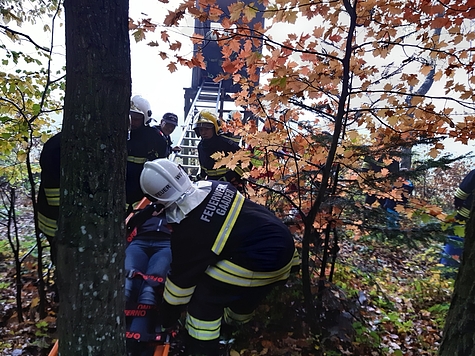 Im zweiten Szenario wurde die Arbeit der Rettungshunde intensiviert. Es wurde angenommen, dass eine kleine Personengruppe auf den Feldwegen um Gaaden spazieren ging und dabei einem Autofahrer begegnete, der unbefugt den Feldweg befuhr. Es entwickelte sich ein Streit, woraufhin der PKW-Lenker eine Schusswaffe zückte, die Spaziergänger panisch flüchteten und sich teilweise verletzt in den umliegenden Büschen versteckten. Nach der Verhaftung des Lenkers durch die Polizei wurden die Feuerwehr und der Samariterbund Gaaden sowie die Rettungshundestaffel zur Suche der vermissten Personen alarmiert. Die Mitglieder der Feuerwehr begannen mit der Suche und fanden eine Person am Wegesrand. Zeitgleich begannen vier Teams der Rettungshunde mit der Flächensuche und fanden nach und nach die weiteren Personen. Die letzte Person versteckte sich in einem Hochstand und konnte diesen aufgrund der Verletzungen nicht mehr selbstständig verlassen. Somit wurde durch die Feuerwehr mittels Steckleiterteilen und Korbschleiftrage kurzerhand die Möglichkeit geschaffen, die Person schonend vom Hochstand zu retten. Auch beim zweiten Szenario konnten die Hunde ihre einzigartigen Fähigkeiten unter Beweis stellen und alle Vermissten auffinden.