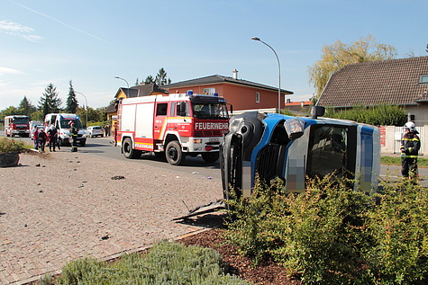 „T1 Fahrzeugbergung, PKW am Dach“, lautete die Alarmierung für die Feuerwehr Brunn am Gebirge am Vormittag des 23.09.2019. Aus unbekannter Ursache verlor der Lenker eines Firmenkleinbuses die Kontrolle über sein Fahrzeug, kam rechts von der Fahrbahn ab, touchierte dort einen Begrenzungsstein welcher das Fahrzeug zum Kippen brachte und kam unmittelbar neben einem weiteren Begrenzungsstein zu liegen.