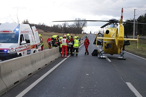 Die ausgerückten Feuerwehrsanitäter unterstützten die ersteingetroffene Rettung bei der Versorgung der Verletzen. Neben den Kräften der Feuerwehr war ein Großaufgebot der Rettung vor Ort - unter anderem auch zwei Rettungshubschrauber. Für die Rettungsarbeiten musste die B17 komplett gesperrt werden.