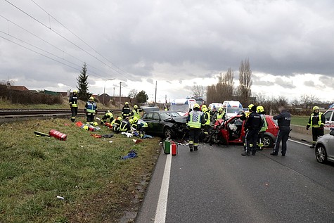 Kurz nach der Alarmierung rückten sechs Fahrzeuge zur Einsatzstelle aus. Dort angekommen, fanden die Kräfte ein wahres Schlachtfeld vor. Zwei Pkw's sind aus noch unbekannter Ursache frontal zusammen gestoßen. Alle Insassen, unter ihnen auch mehrere Kleinkinder, konnten sich selbst aus den völlig zerstörten Wracks befreien bzw. wurden von nachkommenden Lenkern befreit und lagen beim Eintreffen im Grünstreifen. Insgesamt sechs zum Teil schwer Verletzte waren zu versorgen.