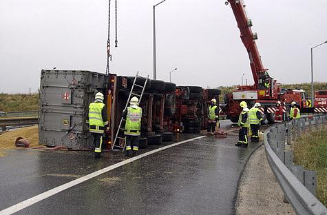 Seit 5.30 stand die Feuerwehr Wiener Neudorf am 8. September 2006 beim Autobahnknoten Vösendorf im Bergungseinsatz. Von der A2 aus Süden kommend war ein Sattelschlepper auf der Auffahrtsrampe zur Aussenringautobahn A 21 umgestürzt.